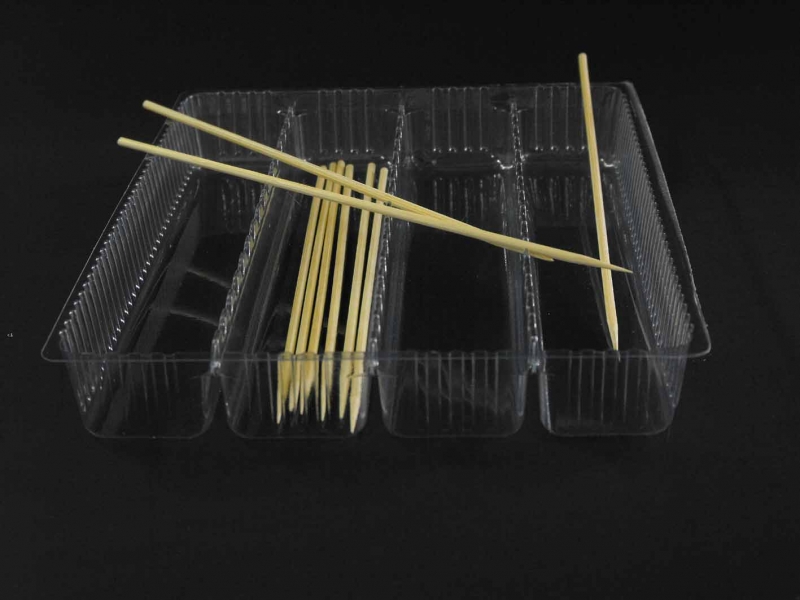 Caserola din plastic cu patru compartimente pentru frigarui etc.